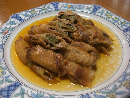 さて!今日は長ネギのお料理をご紹介いたします♪ まず、1品目は・・・「大葉と長ネギの肉巻き」 豚肉の薄切りに大葉と斜め切りにした長ネギをのせ・・・巻いていきます。 豚肉を斜めに巻いていくのがポイント! *少しでも、細長くなるように。 そして、フ…