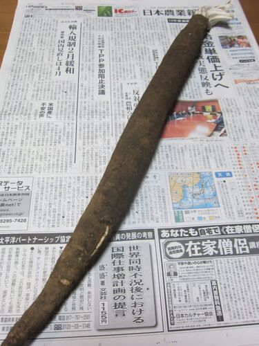 今日はちょっと珍しいお野菜をご紹介します♪ と言っても、過去にもご紹介したことがあるので、覚えていらしたらごめんなさいね♪ では、その珍しいお野菜です♪ こんな葉っぱもついてきました♪ 実はこれ・・・「大浦太ごぼう」というゴボウなんです♪ 千葉県の…