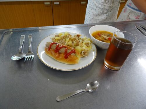 今日の「食育料理教室」の「本物を作ろう~!」の「本物」は・・・ 「ソーセージ」♪ みんなで「ソーセージ」を作り、その「ソーセージ」で「ホットドッグ」や「ジャーマンポテト」♪ そして「ソーセージ入りスープ」を作りました♪ で、デザートは・・・「ブド…