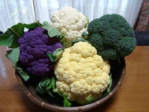 野菜ソムリエ仲間が、畑で採ったばかりの色とりどりの「花野菜」を届けてくれました♪ 「ブロッコリー」に「オレンジ」と「パープル」と「ホワイト」の「カリフラワー」♪ しかも、どれも見事な大きさ♪ ちなみに「ブロッコリー」や「カリフラワー」のことを「…