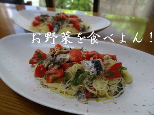 < 材料 (2人分) > (目安にしてください♪) ・ カッペリーニ:140~160g ・ マイワシのオイルサーディン:4~5切れ *マイワシのオイルサーディンの作り方は →「コチラ」です♪ ・ トマト:1こ ・ 大葉:5~6枚 ・ レモン汁(ポッカレモン等でO…