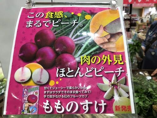 今日、久しぶりに行った→ 道の駅「まくらがの里こが」で、珍しいお野菜を見つけました♪ 「大きな赤カブだな~」と思って近寄ってみると、こんな「ポップ」があったんです♪ 「この食感、まるでピーチ」 ですって♪ ちょっと面白そうなので買って来ました♪ そし…